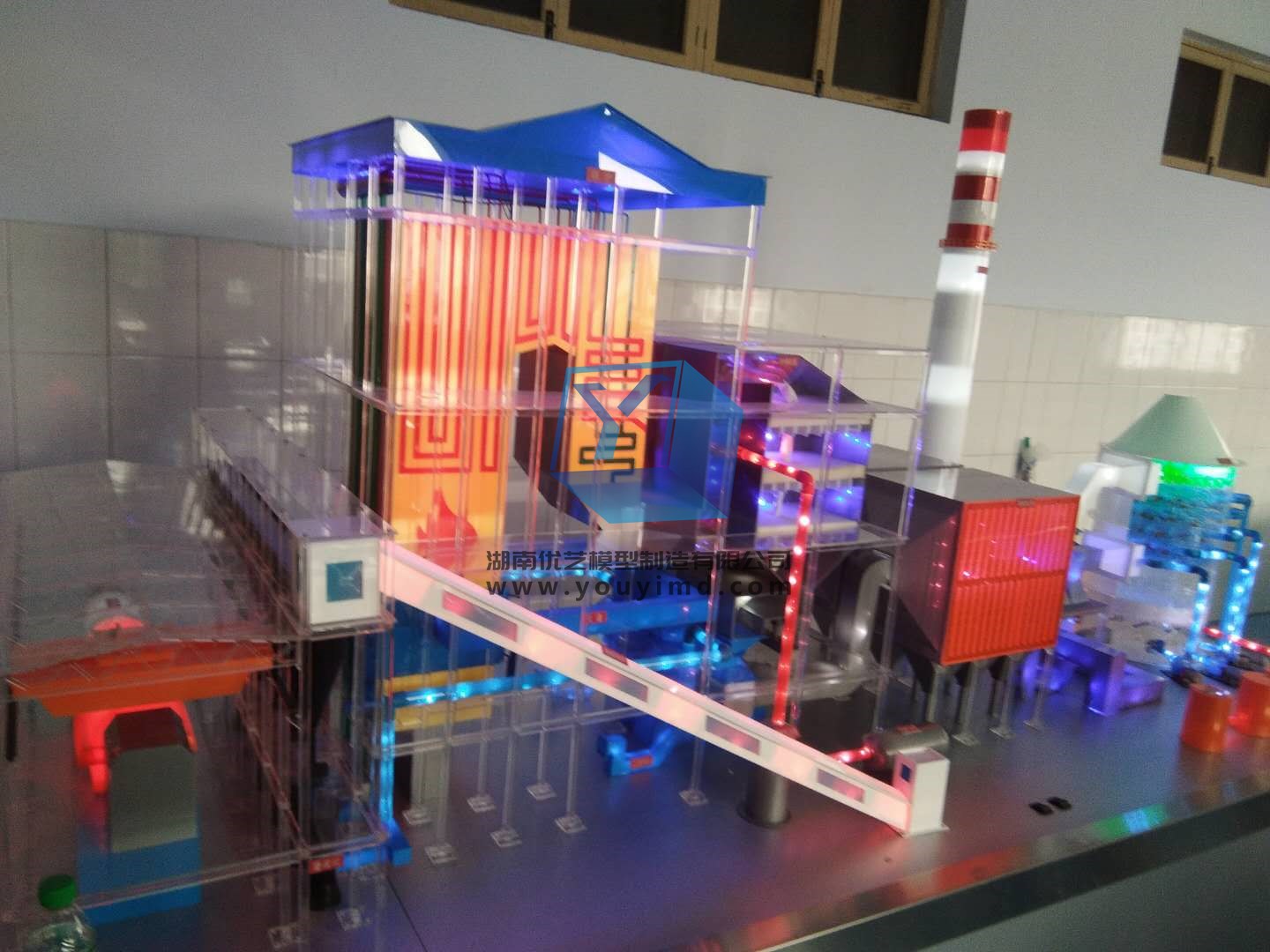 功能說明:汽輪機透明結構動態演示,鍋爐結構分色展示,燈光模擬汽水工藝,燈光模擬煙氣流向工藝