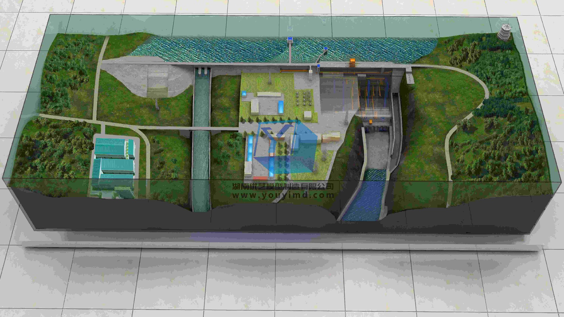 模型操作采用傳統控制開關,控制廊道燈光演示,水輪機動態演示,閘門動態演示。