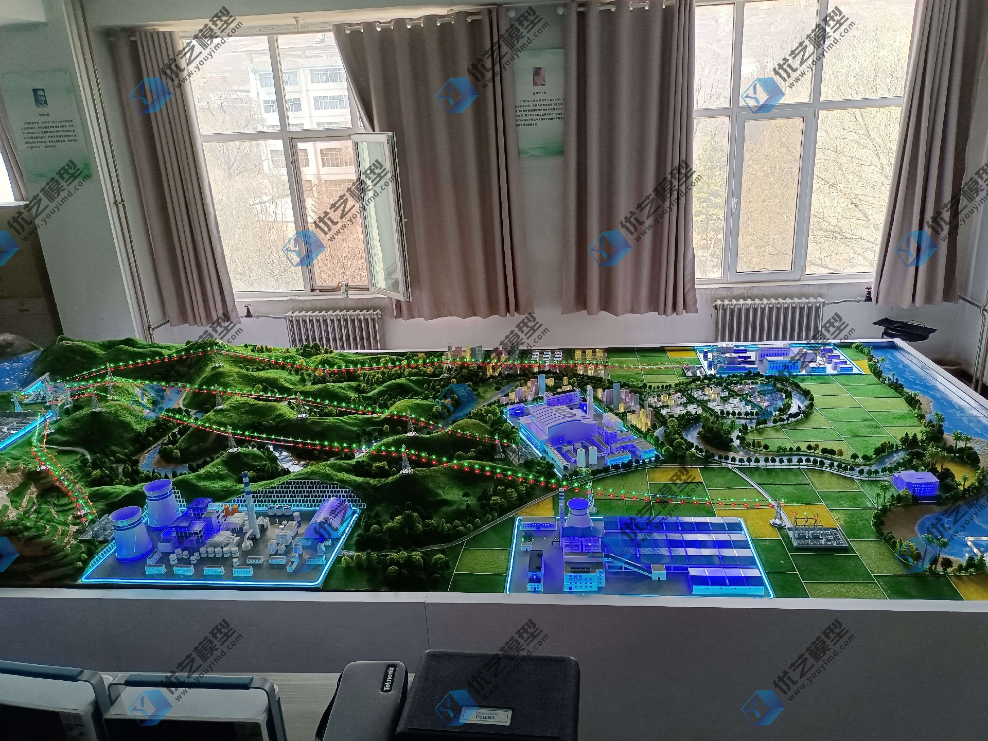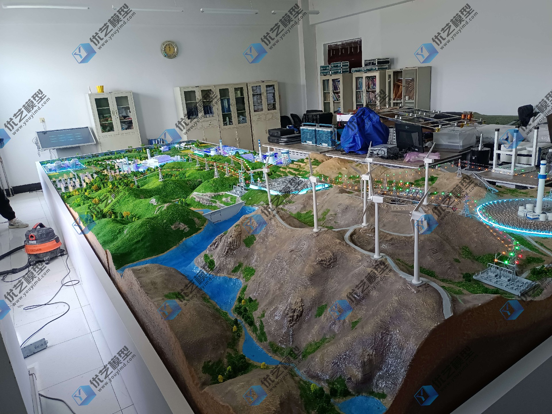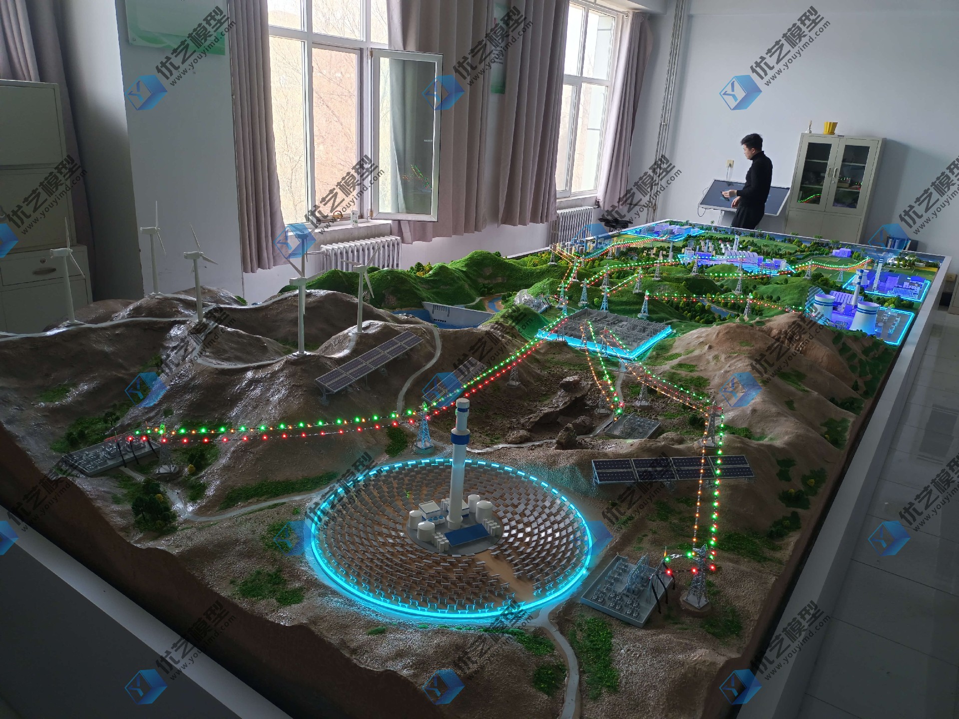 模型功能介紹:綜合新能源電力系統沙盤,是由湖南省優藝模型制造有限責任公司與青海大學共同研發定制產品,模型尺寸為8米乘以3米,主要制作出:火力發電模塊:展示傳統的燃煤發電站的結構和工作機制。通過三維動畫展示燃燒過程和蒸汽循環發電的過程。風力發電模塊:包含風力發電機(風車)的模型,通過三維動畫詳細講解風力發電機結構元發電原理。太陽能發電(光伏、光熱)模塊:通過模型和動畫演示如何從太陽光直接生成電力。水力發電模塊:展示水輪機和水壩的模型,并通過動畫解釋水力發電的結構與原理。核電站模塊:通過模型與三維動畫結合核電站的結構和原理,垃圾發電模塊:展示垃圾焚燒發電的過程。潮汐發電模塊:通過模型展示利用海水潮汐運動來驅動發電機的原理。生物質發電模塊:解釋和展示如何從農業廢物、木材碎片等生物質資源中提取能量進行發電,輸變電模塊:展示從發電站到用戶家庭的電力傳輸和變壓過程。模塊與模塊之間采用LED流水燈動態模擬電能產生與輸送設備采用觸控電腦控制,搭載三維原理動畫視頻同步演示講解各類電站的結構、發電原理等,三維動畫包含風力發電原理三維動畫,光伏發電原理三維動畫,水力發電原理三維動畫,核電發電原理三維動畫,火力發電原理三維動畫整個設施采用觸控電腦控制系統,觀眾可以互動選擇查看不同發電模塊的詳細信息和三維動畫視頻,更深入了解各發電技術的工作原理和構造。這種展示方式不僅科技感十足,而且極大地增強了教育和信息傳遞的效果。