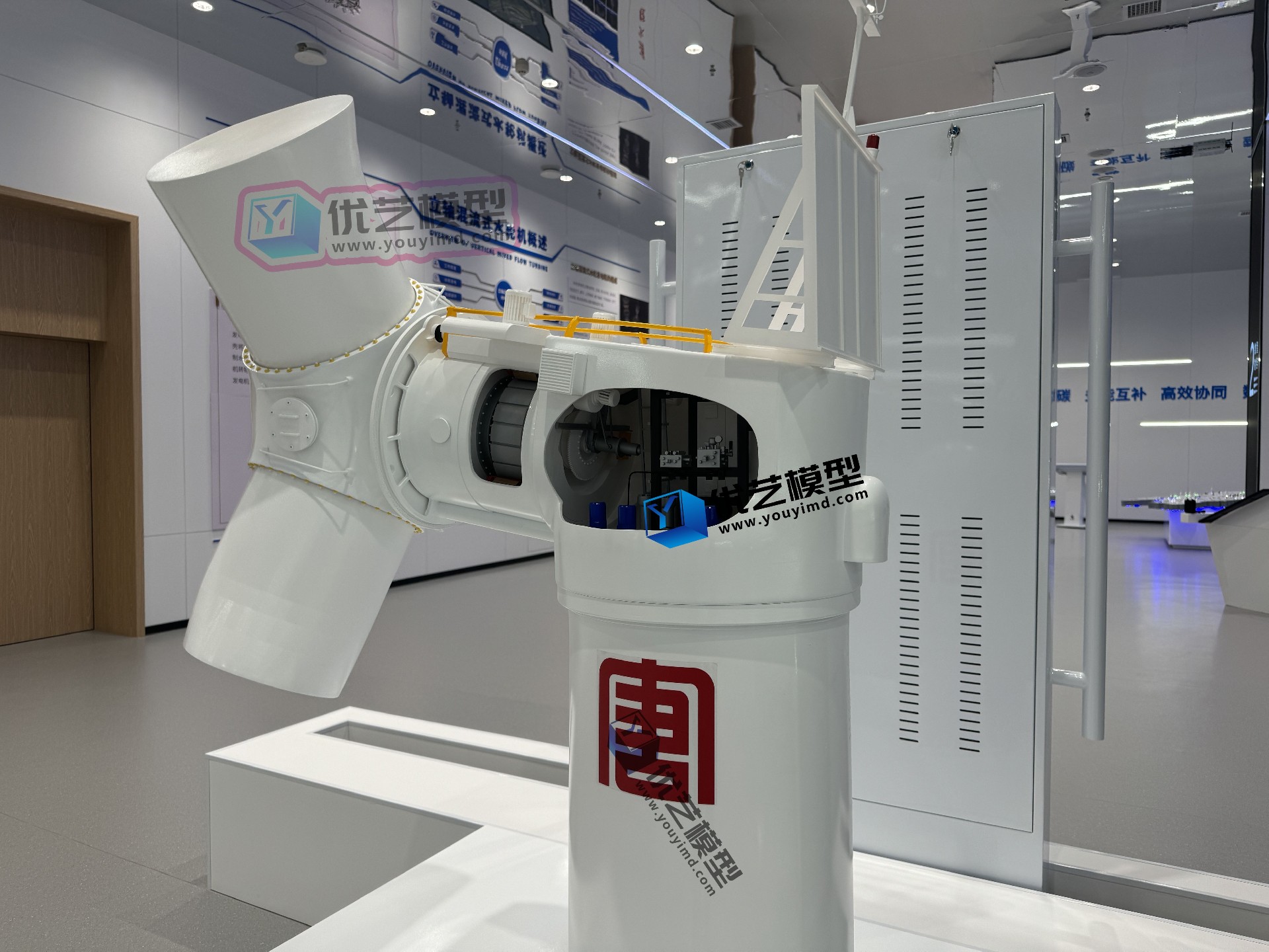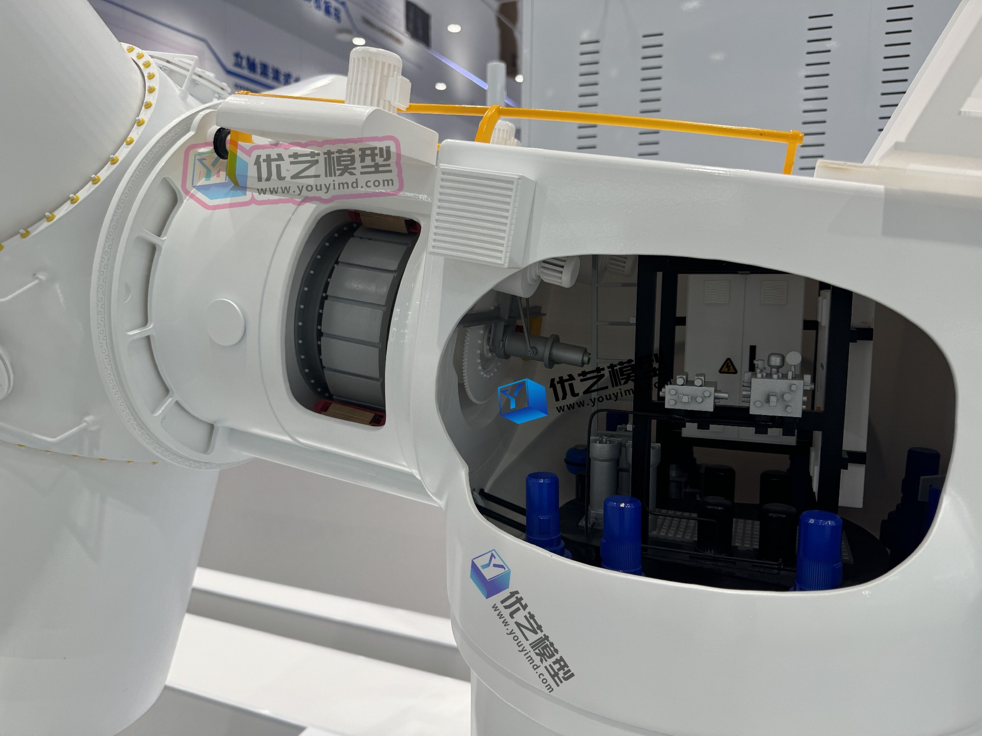 湖南省優(yōu)藝模型制造有限責(zé)任公司匠心打造的高精度仿真模型——半直驅(qū)風(fēng)力發(fā)電機(jī)動(dòng)態(tài)演示模型!該模型以明陽(yáng)MySE 4.0半直驅(qū)風(fēng)力發(fā)電機(jī)為原型,尺寸為:長(zhǎng)1.2米,寬1.2米,高1.7米,采用全剖面結(jié)構(gòu)設(shè)計(jì),突破傳統(tǒng)模型的靜態(tài)局限。您不僅能360度觀(guān)察風(fēng)機(jī)外部流線(xiàn)型葉片,更可通過(guò)葉片與機(jī)艙的雙重剖面,清晰透視輪轂、齒輪箱、發(fā)電機(jī)等核心部件的精密構(gòu)造!模型搭載無(wú)線(xiàn)遙控系統(tǒng),一鍵啟動(dòng)即可演示風(fēng)輪轉(zhuǎn)動(dòng)、機(jī)艙偏航等動(dòng)態(tài)過(guò)程,讓風(fēng)力發(fā)電原理從抽象概念變?yōu)橹庇^(guān)體驗(yàn),是教學(xué)講解、科普展覽的沉浸式利器!